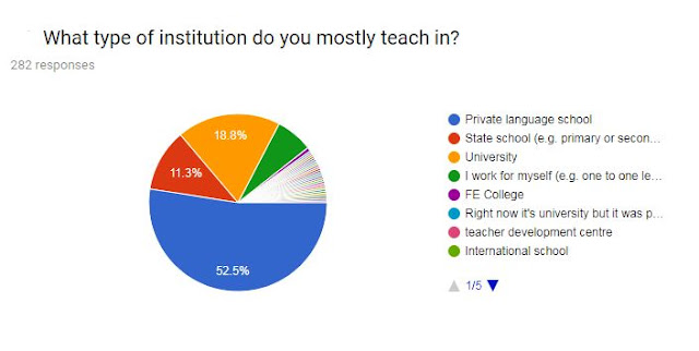 The majority of respondents had been working in ELT for over 10 years but I did get a good few responses from people who hadn't been working in ELT all that long.