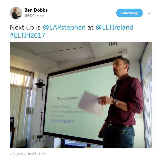 I'm a big fan of homework. In the past, I gave students homework intermittently and without a lot of thought (e.g. "finish that part at home", "talk to someone about.....") and the response was lacklustre. Then I started putting a lot more thought into the homework I gave and made it a routine of every lesson (set it at the end of class, discuss it with everyone, check it first thing the next day). It seemed to go over well so I've stuck doing it over the years. But as with all things, you start off doing it for a reason and then, after a while, you keep doing it because that's what you always do. So that's why I chose the topic to give a presentation on and why I wanted to know a bit more about what other teachers do. I was also curious to know a little bit more about other teachers' working conditions which I hoped to get a glimpse off through a discussion of homework.